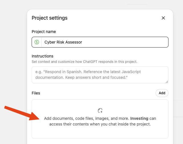 Note: Always consult your Information Security/AI Governance/Privacy teams before deciding what is appropriate to upload to a ChatGPT project.