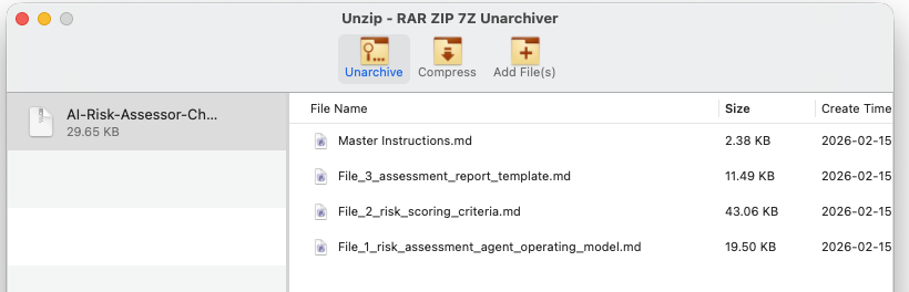 - An Agent Operating Model file that tells the AI how exactly to perform an assessment.